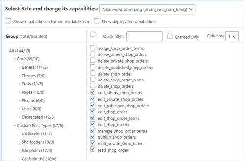 - Show capabilities in the human readable form: Hiển thị tên các quyền dễ đọc hơn. VD: edit_published_posts sẽ hiển thị kiểu “Edit published posts” giống với ngôn ngữ đời thường.