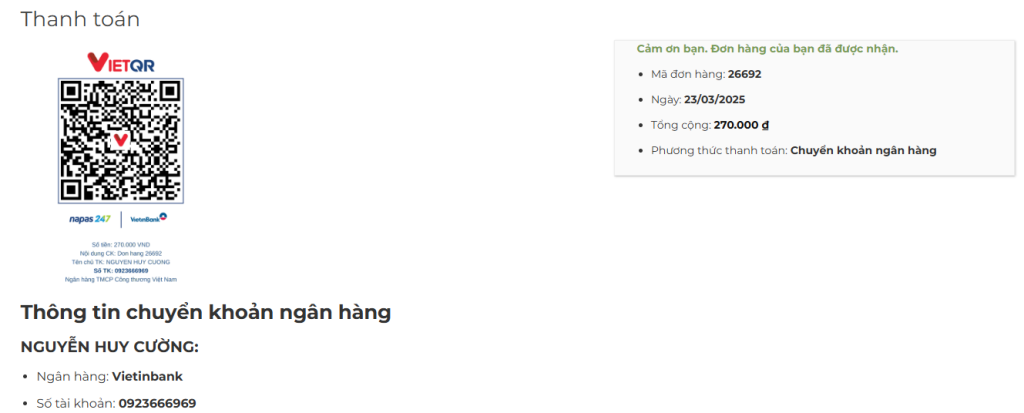 Như vậy chỉ cần cấu hình và code 1 vài bước đơn giản là đã có thể tích hợp mã QR Code thanh toán vào trong WooCommerce một cách dễ dàng. Chúc các bạn thành công.
