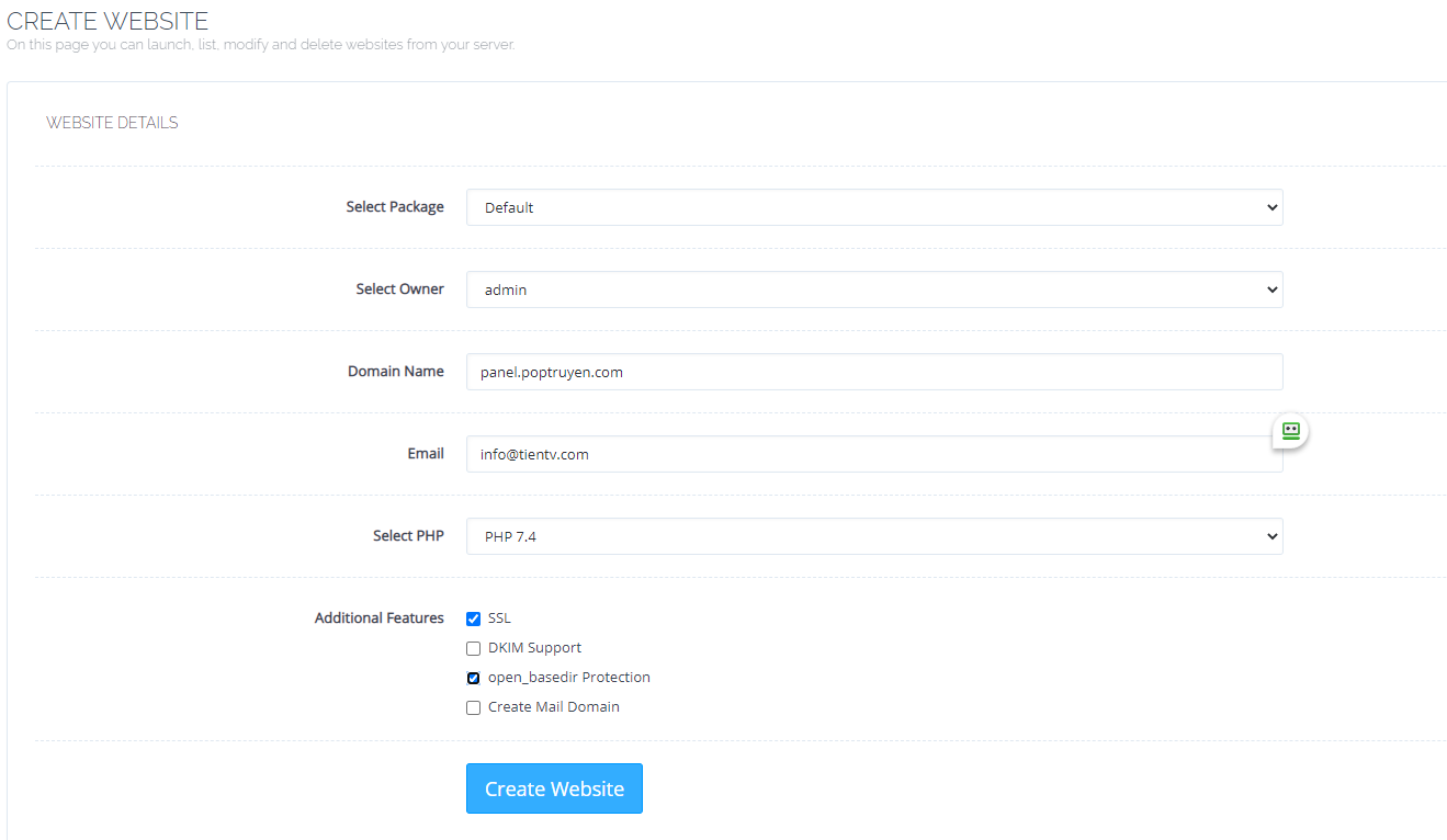 Giả sử tôi muốn liên kết bảo mật cho CyberPanel (CP) là: https://panel.poptruyen.com