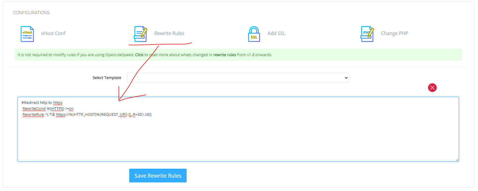 Tiếp theo bạn vào Website > List website > Subdomain vừa tạo > Manage > Kéo xuống dưới tìm đến phần Rewrite Rules, sau đó bạn đưa đoạn mã này vào cuối rồi nhấn Save: